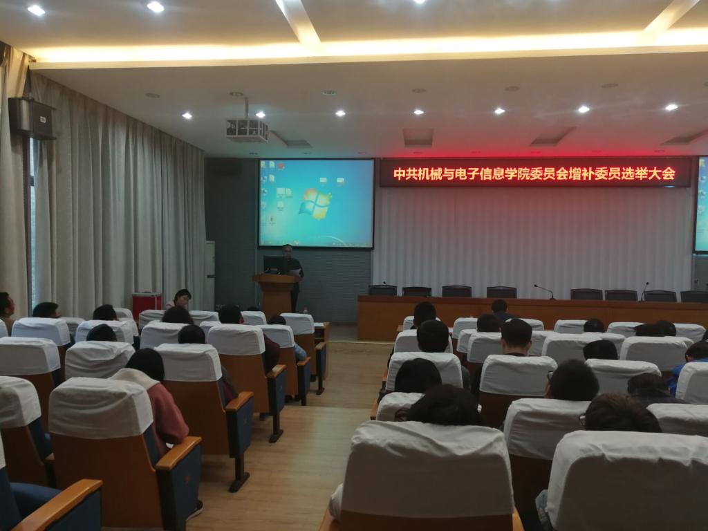 经请示校党委组织部批准,中共开云kaiyun体育委员会增补委员选举大会于2019年3月21在教二楼301报告厅举行。校党委组织部梁本哲副部长莅临大会指导工作,党委副书记于晓舟同志主持大会。
