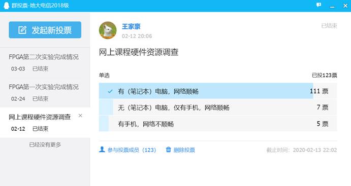 三个教学班分别在每周周一、周二、周三的晚上19:00-22:00进行实验,王老师采用课前录制实验教学视频或课上实时直播教学的方式,首先向学生讲解实验的要求、给出设计思路和提示,并进行在线答疑;给予学生一定时间去独立思考并尝试设计后再进行直播讲解实验操作,之后将剩余时间留给学生修改自己的设计模块、测试模块,完成后续功能仿真、编译综合等,同时将所有讲解视频上传供学生重新观看加强学习。对于在线答疑中无法直接回答的问题,则采取电脑远程控制的方式逐一帮助学生解决。在实验结束后,及时调查学生实验完成情况,针对完成不够好的同学进行跟踪,了解他们的具体情况和原因,并给出针对性建议。而对于未参加投票的同学,老师将花费更多的时间精力去摸清这部分同学的实验情况和学习效果,并与助教一起联系这部分同学以及完成情况不理想的同学,弄清他们的困难,在课程学习上针对性予以帮扶。