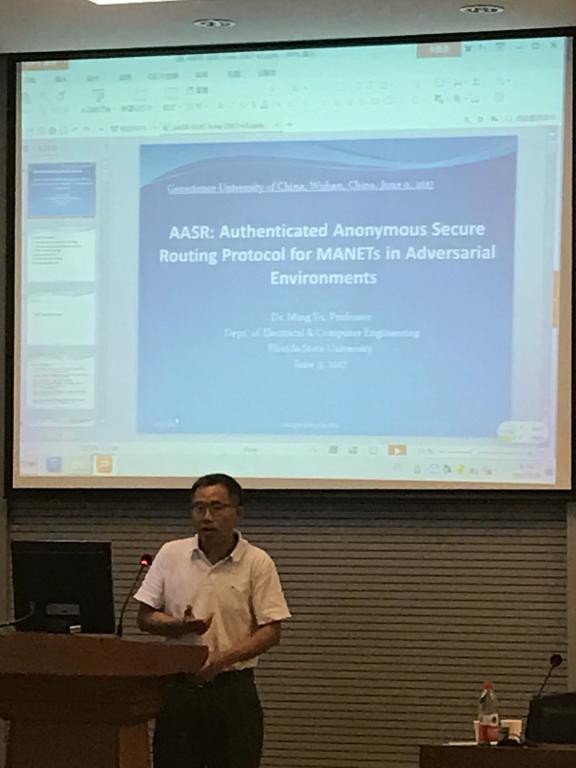 应开云kaiyun体育院长丁华锋教授、科发院邀请,美国佛罗里达州立大学Ming Yu教授于6月9日来开云官网作题为“Authenticated Anonymous Secure Routing for MANETs in Adversarial Environment”的学术报告。