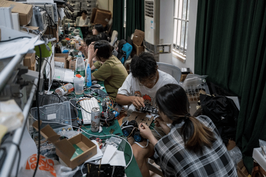 本次参赛队历经基础培训、强化培训、模拟题强化、半封闭竞赛、湖北赛区集中测试、拟推荐国测队伍综合测评、国赛综合测试等环节,备赛周期长达8个月。机电学院从2024年底开始组织备赛,电赛指导组成员包括:张祥莉、郝国成、王勇、王巍、程卓、李莹玉、吴让仲、李响、杨勇、王瑾、罗大鹏、王家豪、杨勇、倪效勇、黄田野、吴志超、李杏梅、张晶、严军等23位老师。指导组老师在机电学院的支持下将本竞赛备赛工作与“模拟电子技术基础”、“数字系统设计”、“单片机与嵌入式系统应用”、“单片机与嵌入式系统应用实验”、“嵌入式控制系统设计实习”等专业教学内容结合,通过“课赛融合”的方式使学生夯实了专业基础、提高了电子技术应用能力、深化了工程化设计思想、拓展了专业前沿视野。