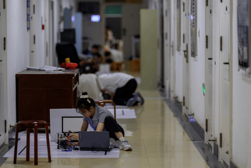 全国大学生电子设计竞赛是教育部和工业和信息化部自1997年共同发起的大学生学科竞赛,目的在于推动高等学校促进信息与电子类学科课程体系和课程内容的改革。竞赛特点为与高等学校相关专业的课程体系和课程内容改革密切结合,以推动其课程教学、教学改革和实验室建设工作。中国高等教育学会高校竞赛评估与管理体系研究工作组发布的全国普通高校大学生竞赛分析报告中,全国大学生电子设计竞赛排名第六。该比赛历来是行业认可度最高的专业赛事,推动了电子信息工程、通信工程等专业高质量发展,助力学生高质量就业。2025年全国1161所高校的22586支团队67758名选手参赛。半封闭竞赛的四天三夜里,参赛选手们在赛场内围绕赛题争分夺秒开展赛题任务通关,用电路点亮灵感,用代码编织创意,在理论与实践的高度融合中检验工程实践能力和复杂问题解决的能力。电赛命题一直秉承以实际产业应用背景为导向,紧密结合课程教学基础内容,保持与时俱进紧跟新技术应用趋势的宗旨。今年电赛命题紧密结合新能源、人工智能和智能控制等产业热点方向,一方面培养了学生解决工程实践问题的思维,另一方面为高校培养学生提供了技术方向的指引。