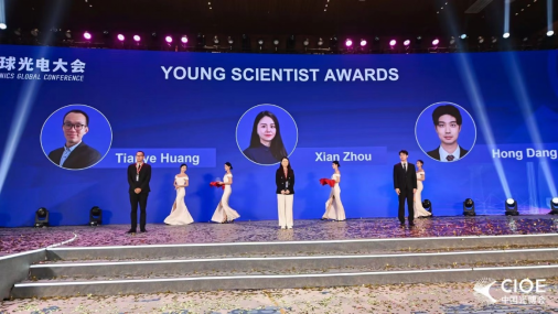 会议开幕式上,开云kaiyun体育(武汉)开云kaiyun体育黄田野教授因其在光纤激光与传感技术领域的卓越贡献,荣获本年度光电大会青年科学家奖(共三名)。香港工程科学院院士、美国国家工程院院士、香港科技大学刘纪美教授向黄田野教授颁发了青年科学家奖状和奖杯。
