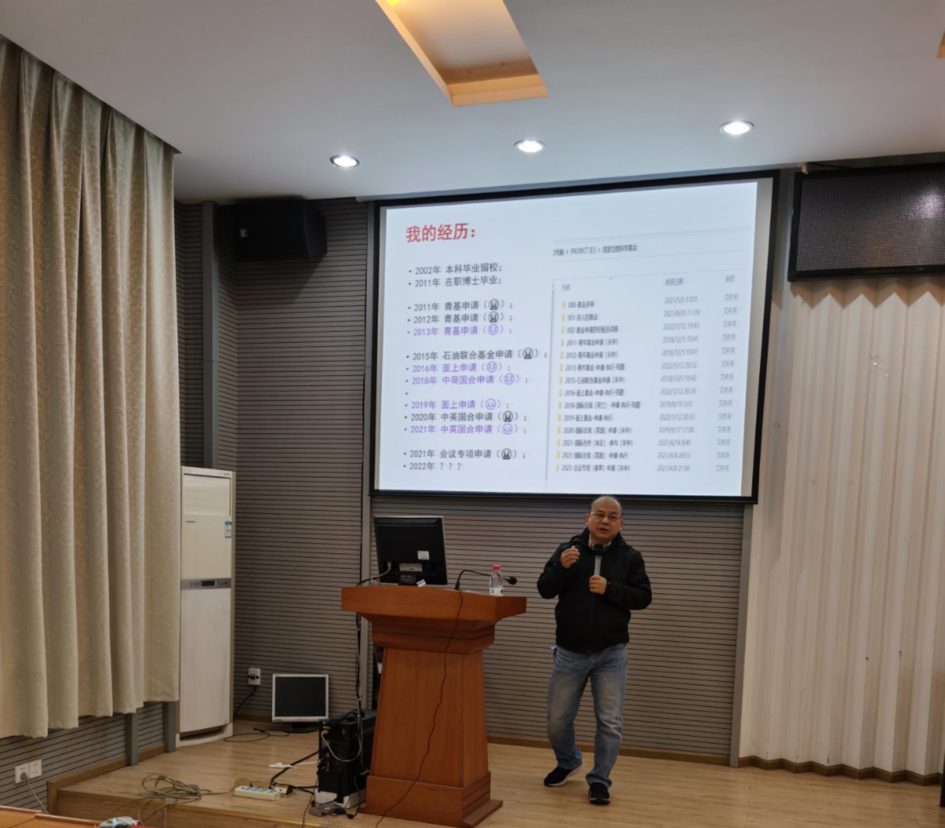 机械系葛明峰老师从选题开始到提交基金申报书详细介绍成功获得基金的经验,对每一步骤都进行精准细致解读,提醒教师要根据评议要点撰写基金,兼顾大同行和小同行,评审专家关注的方面等尽量做到无懈可击。