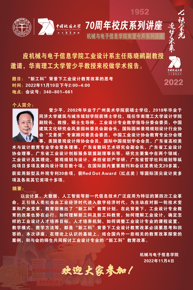 机电讲坛(2022-23):华南理工大学管少平教授来校做学术报告