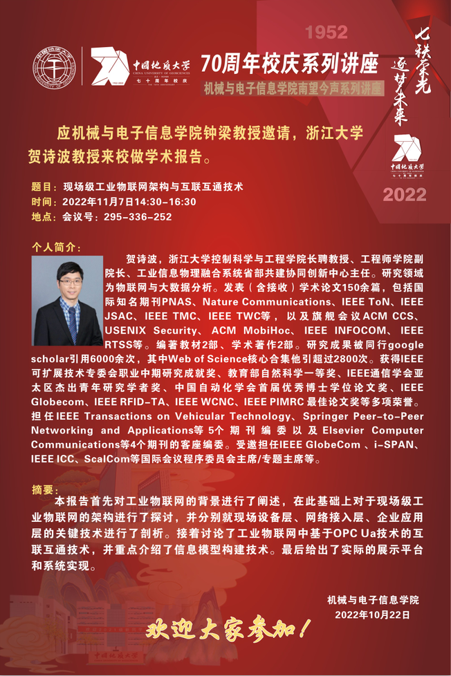 浙江大学贺诗波教授来校做学术报告“现场级工业物联网架构与互联互通技术”