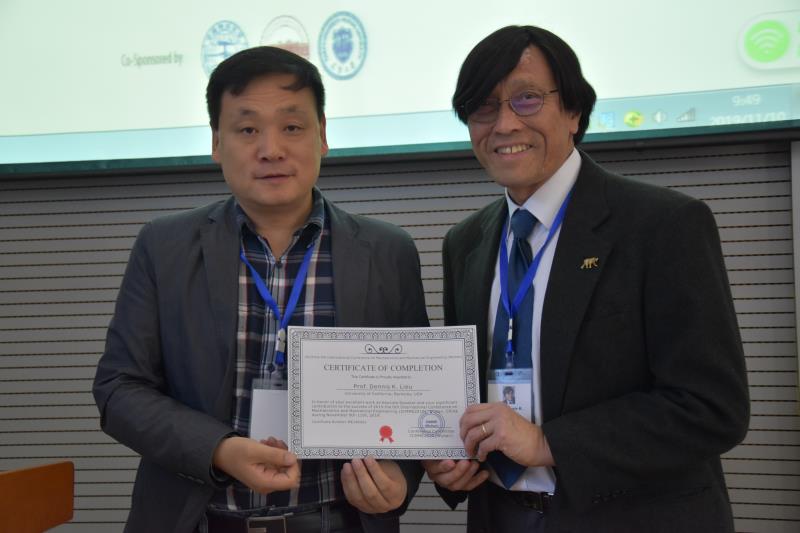 会议于11月10日上午在教二楼301会议室开幕。会议伊始,本次大会主席,开云kaiyun体育(武汉)开云kaiyun体育院长丁华锋教授致开幕辞,代表所有大会委员会成员对学者们的出席表示热烈欢迎,他表示相信各位专家的精彩报告与讨论将推动机电与机械工程领域的前沿研究,加强领域了解、促进合作。来自美国加州大学伯克利分校的Dennis K. Lieu教授就混合动力汽车动能回收系统的控制作了主题演讲。会议共进行了4个主题演讲,随后,来自合肥工业大学的訾斌教授对演讲者进行了颁奖。
