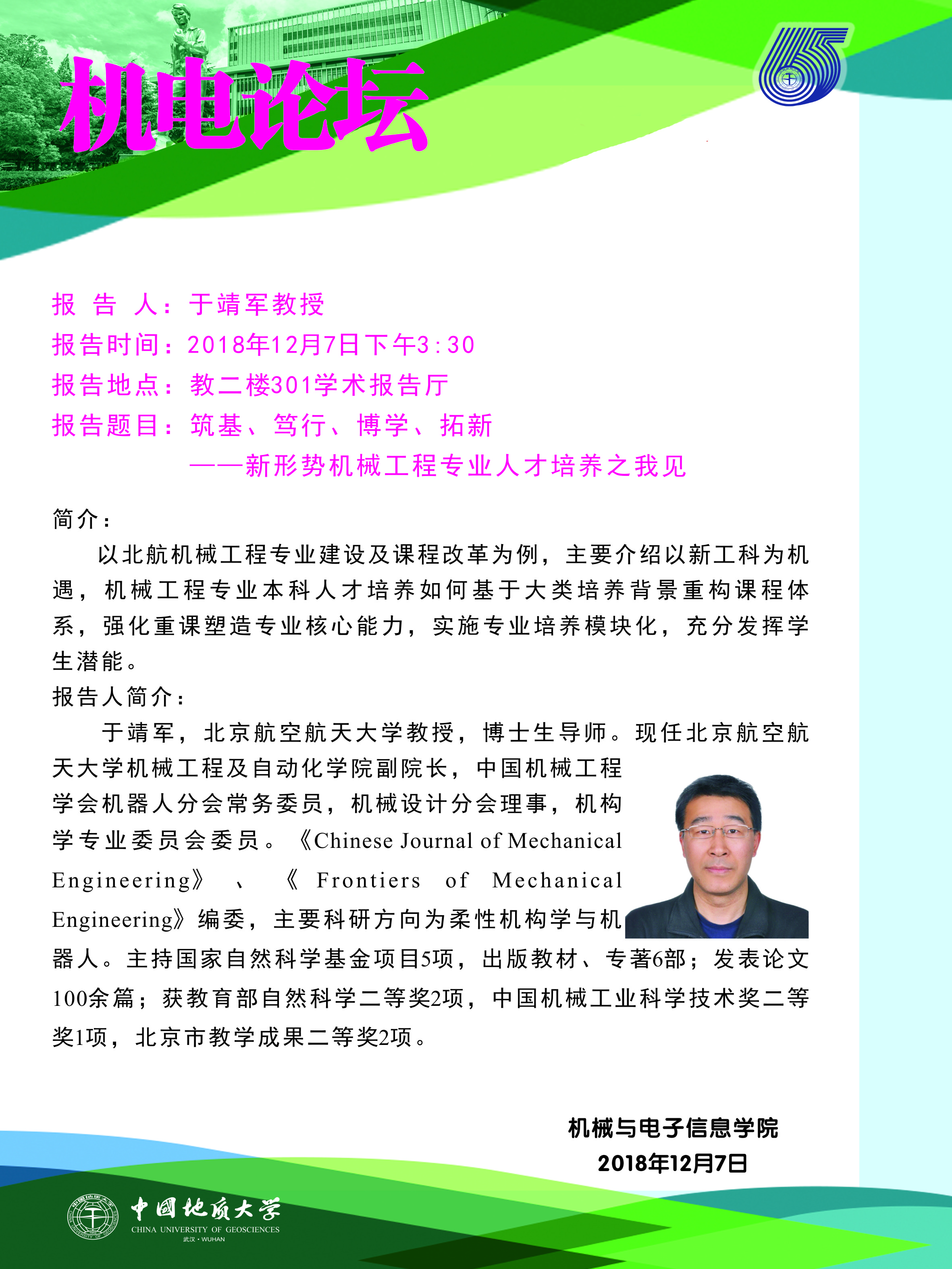 机电论坛:北航于靖军教授来开云官网作报告