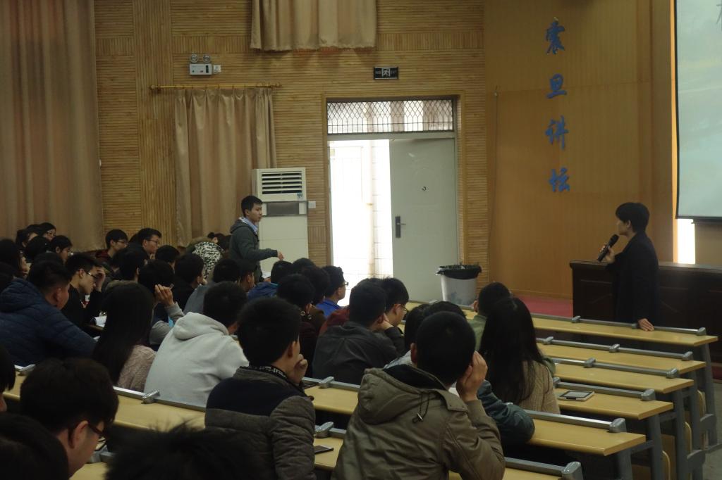 潘利围绕学生目前最关心的选课、学分、毕业等问题进行了详细的讲解,并与大家进行了交流与现场答疑。