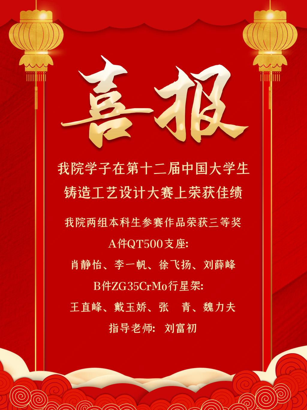 [2021.5]开云官网学子在第十二届中国大学生铸造工艺设计大赛上荣获佳绩
